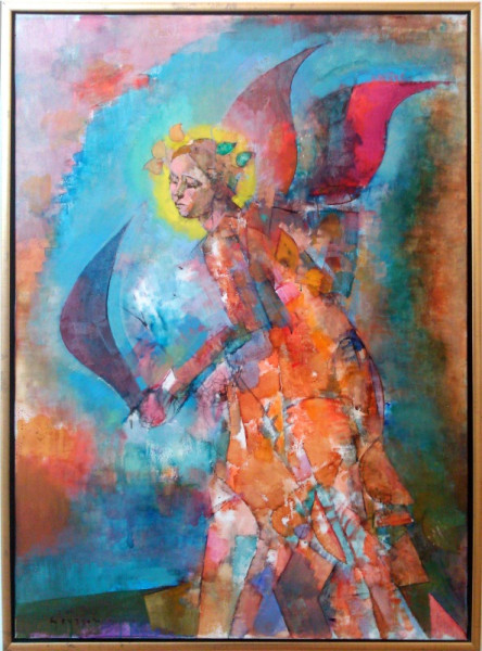Az őrangyal hatalmas pallosával több képen is szerepel, színes mozaikokra emlékeztető színorgiájával fantasztikus hatást kelt. Sárgák, türkizek, a zöldnek különféle árnyalatai vidám hangulatot árasztanak, az angyal előrelendülő, mégis finom mozdulata meggyőző erővel hat a nézőre.