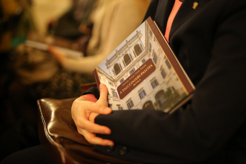 Farbaky Péter művészettörténészként is nagyra értékelte a kötet képi anyagát. A BTM főigazgatója a három fő egységre tagolt könyv első, az épületet bemutató részét elemezte. Mint mondta, ez is két részre oszlik: a palota építésének történetére, illetve az épület belső és külső bemutatására. Hozzátette: bár járt ösztöndíjasként, utóbb pedig több konferencia résztvevőjeként is a palotában, a könyv elolvasása után ismét szeretne visszatérni Rómába, hogy a megszerzett új tudás birtokában járja be a termeket.