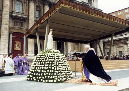 A Szent Szűz kérésének eleget téve II. János Pál pápa 1984-ben felajánlotta Mária Szeplőtelen Szívének az emberiséget.