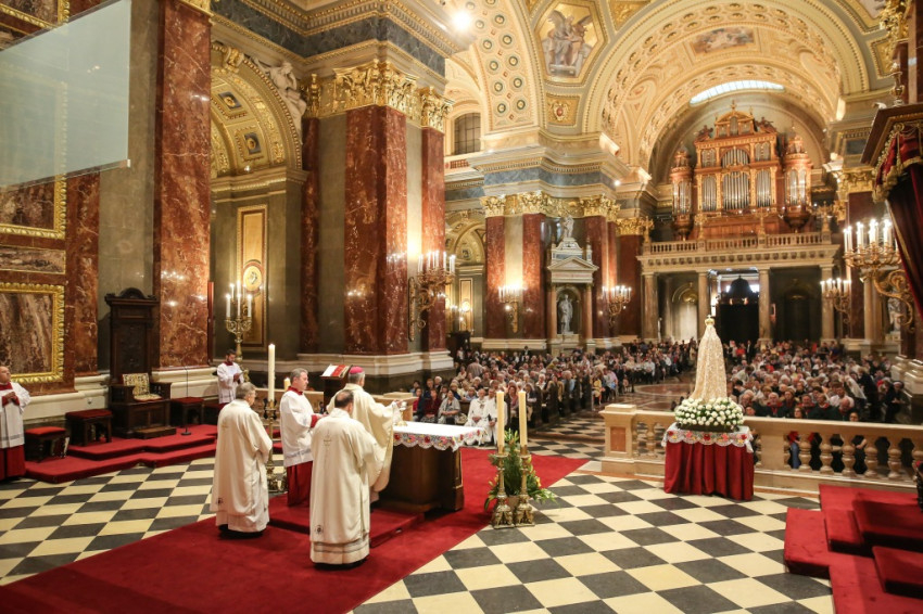 Így jutott el Budapestre ezen szobrok egyike, így köszönthetjük most templomunkban. Mária a szeretettel tántorít el a bűntől és az istentelenségtől – fogalmazott a püspök.