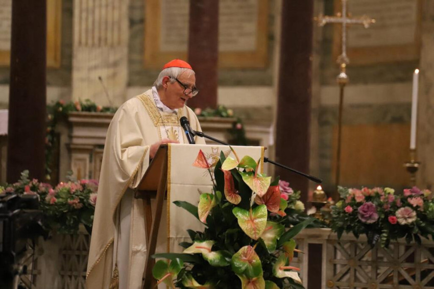 Zuppi bíboros fiatal kora óta a Sant’Egidio tagja, így mindvégig többes szám első személyben beszélt. Szemléljük a szeretet teljességét, ahová az életünk tart – mondta. Akkor tudunk jól élni ezen a földön, ha nem feledkezünk meg arról, hogy az életünk efelé tart. Szegénységünk és kicsinységünk ellenére az Úr elárasztott szeretetének ámulatra méltó kincseivel. Az a parányi mag, amelyet 1968. február 7-én vetettünk el, nem szűnik meg sok gyümölcsöt teremni.