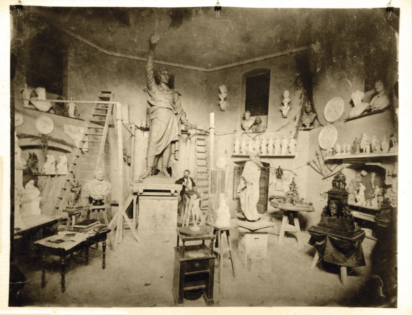 Nagyon érdekes az 1870-es évek sokat foglalkoztatott szobrászművésze, Huszár Adolf műterme, amelyet Morelli Gusztáv, a korszak híres fametszője, a főiskola tanára és fotográfusa fényképezett le, majd készített róla fametszetet. Huszár mintázta a Duna-parti Petőfi-szobrot, amelynek gipszmintája műhelyének fő látványossága. A szobrász műterme ekkor még nem a Bajza utcai épületben volt, hanem a városligeti körhintapavilonból alakítottak ki számára ideiglenes helyet.