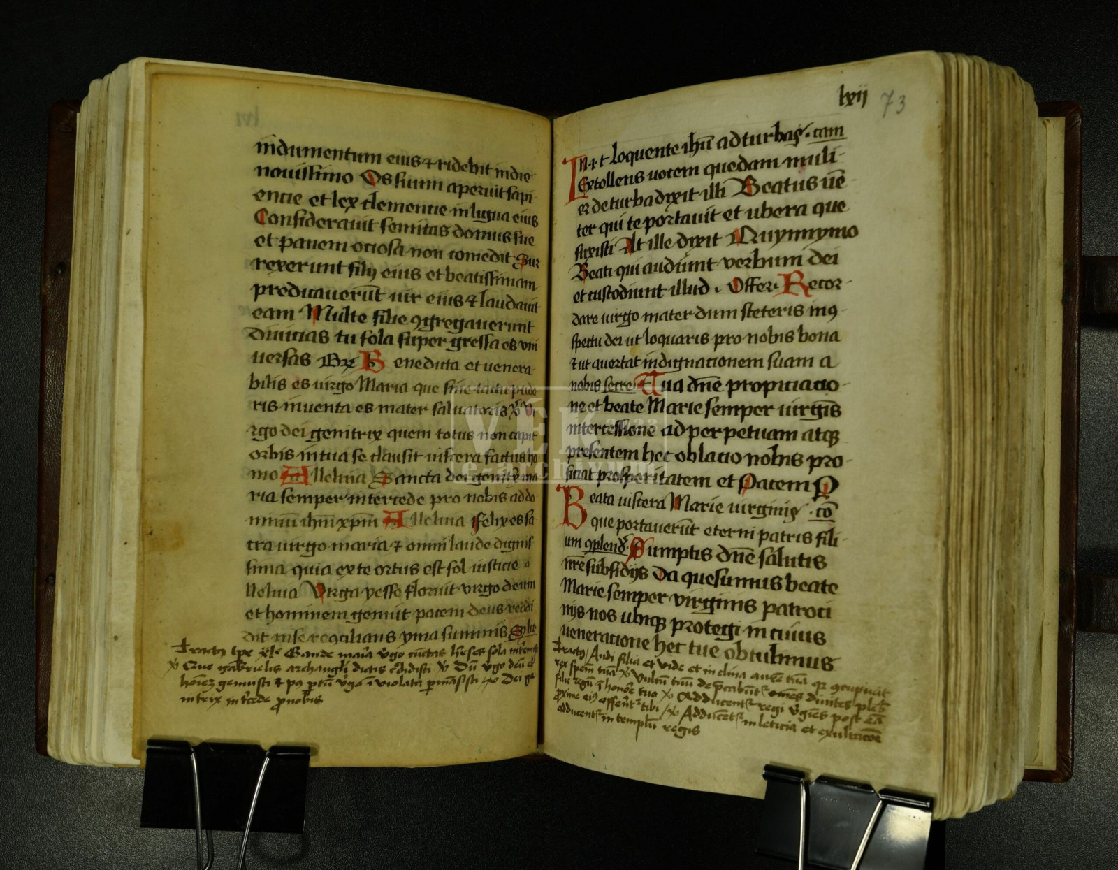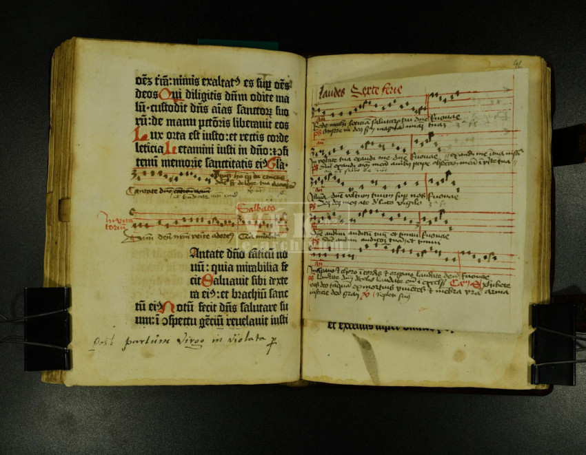 Számos kéziratos kiegészítés található a kötetben. Utólag betoldott hét lapon zenei bejegyzések találhatóak. A psalterium hátsó előzékének két oldalára írott 17–18. századi szövegek és dallam lejegyzések bizonyítják, hogy évszázadokon keresztül magánájtatosságra használták.