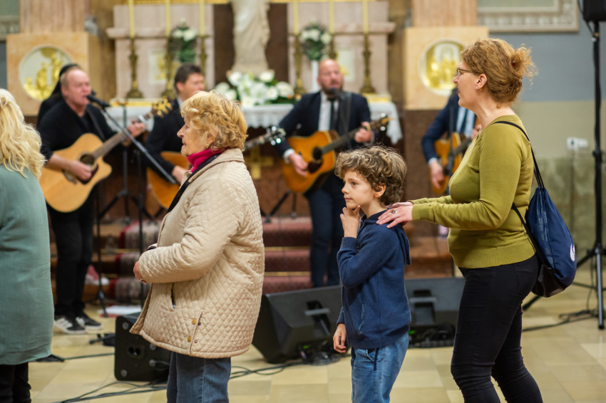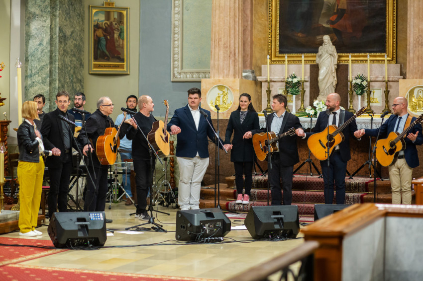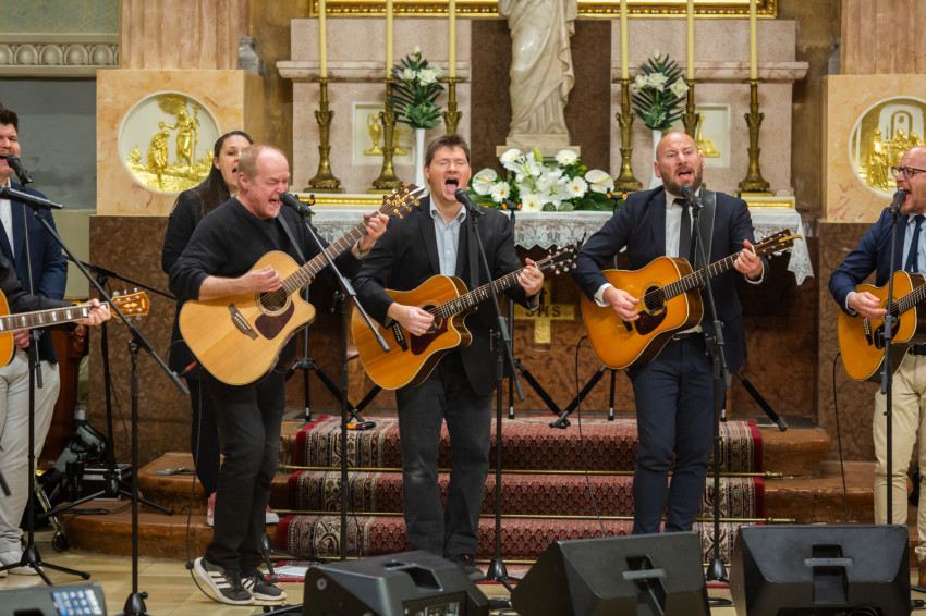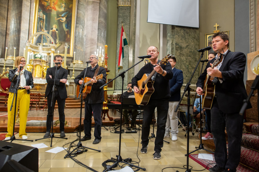A liturgiát követően rövid örömzenélésre maradt a különleges formáció. A keresztény könnyűzene doyenje, Sillye Jenő vezetésével a békéért és Ferenc pápa szolgálatért felhangzott a Jöjjön a földre igazi béke; majd hazánkért, és „hogy unokáink gyermekei is Szent István népe maradhassanak”, a Hargitáig szállt a dal. Ne félj, mert megváltottalak! – végül ezt énekelte a csapat és a hozzájuk csatlakozó hívek.