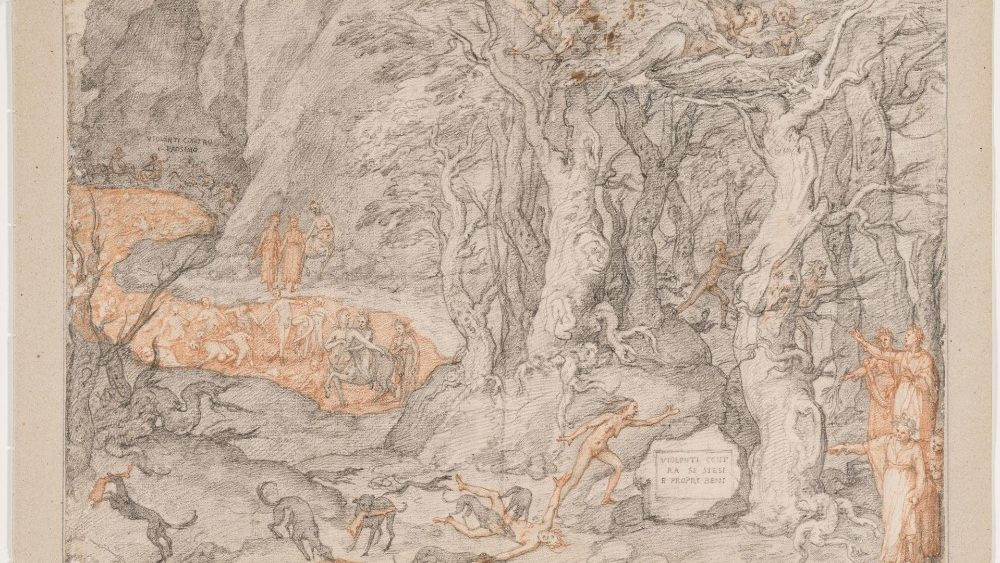 A nagy sötétlő erdőből a Paradicsom szféráiba vezetnek Federico Zuccari rajzai. Az itáliai késő manierizmus egyik fő alakjának illusztrációi eredetileg az Isteni színjáték három könyvét tartalmazó kötetben szerepeltek. A firenzei képtár honlapján a grafikák mellett tudományos leírások olvashatók. Eike Schmidt igazgató elmondta: „Nagy büszkeség az Uffizi képtár számára, hogy a nagy költő halálának hétszázadik évfordulóját úgy nyithatta meg, hogy a grafikus művészet e rendkívüli gyűjteményét mindenki rendelkezésére bocsátotta. Értékes anyag nem csak a kutatóknak, hanem mindazoknak, akik Dante művének rajongói, és szeretnének elmélyedni benne, a költő szavaival: tudni és haladni előre!”