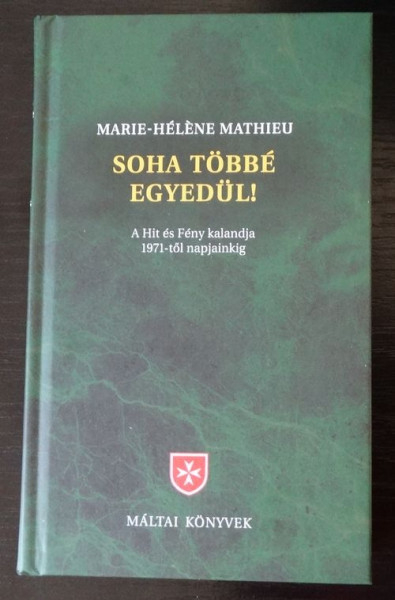 A Magyar Máltai Szeretetszolgálat minden esztendőben értékes olvasnivalóval ajándékozza meg az istenkeresőket. Az értelmi fogyatékkal élő gyermekek és szüleik szorongására és magányára 1971-ben a franciaországi Lourdes-ban életre hívott Hit és Fény mozgalom 45. születésnapja alkalmából a Máltai Könyvek sorozatban Jean Vanier munkatársa, Marie-Hélène Mathieu Soha többé egyedül című könyvét vehetik az érdeklődők a kezükbe, amely magyar nyelven most jelent meg először.