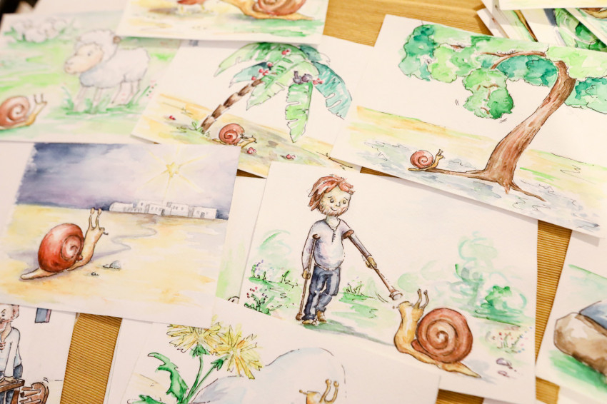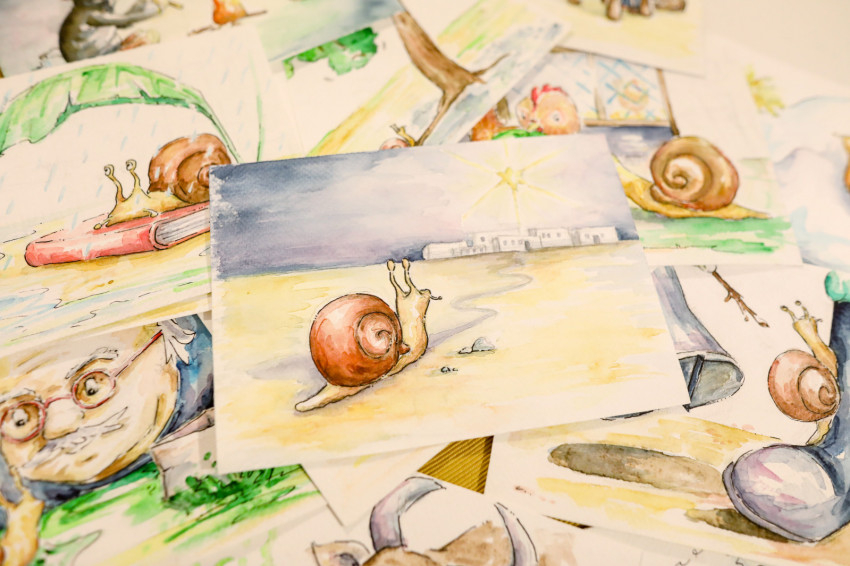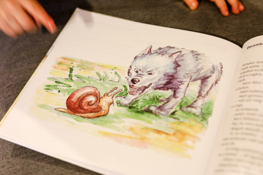 – A tavaszi karanténidőszakban készültek el a rajzok. Amikor hirtelen mindenkinek otthon kellett maradnia, aggódtam, hogyan fogok így dolgozni. A kisfiam nem járhat óvodába, egész nap velem lesz, a már elkészült termékeimet sem tudom postára adni úgy, hogy ne találkozzunk senkivel. De ahogy már korábban is sokszor megtapasztaltam, és tapasztalom mind a mai napig, valahogy mindig elrendeződnek a dolgok, a Gondviselés mindig ad új és új lehetőséget. A karantén idején ezt a mesekönyvet adta, amelyhez esténként tudtam rajzolni. Kisfiam az új helyzet miatt, hogy nem mehetünk sehova, csak a környéken lévő erdőben sétáltunk, nagyon igényelte a társaságomat, így elég hamar rájöttem, el kell engednem azt, hogy napközben dolgozzak. Esténként, fektetés után álltam neki a rajzolásnak. Sokszor vacsoraidőben ittam még egy kávét, mert anélkül altatás közben én is elaludtam volna.