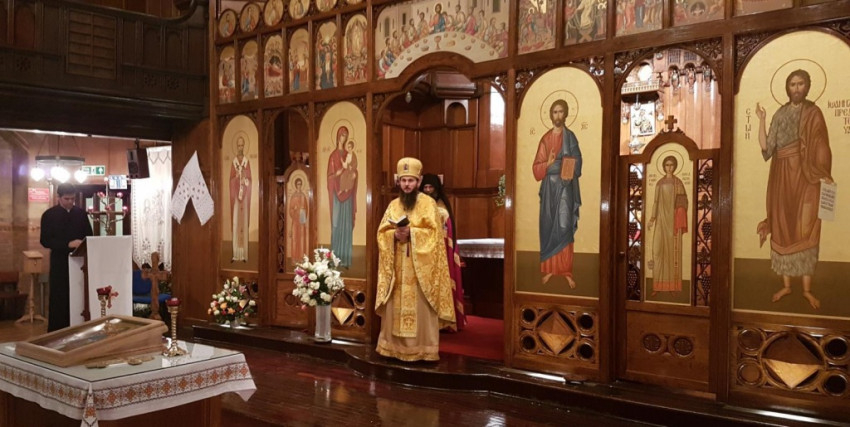 A vasárnapi Szent Liturgia előtt szentgyónásra is volt lehetőség magyar nyelven. A szertartáson Szabó Csaba kispap, aki szociális évét Londonban tölti, látta el a kántori feladatot.