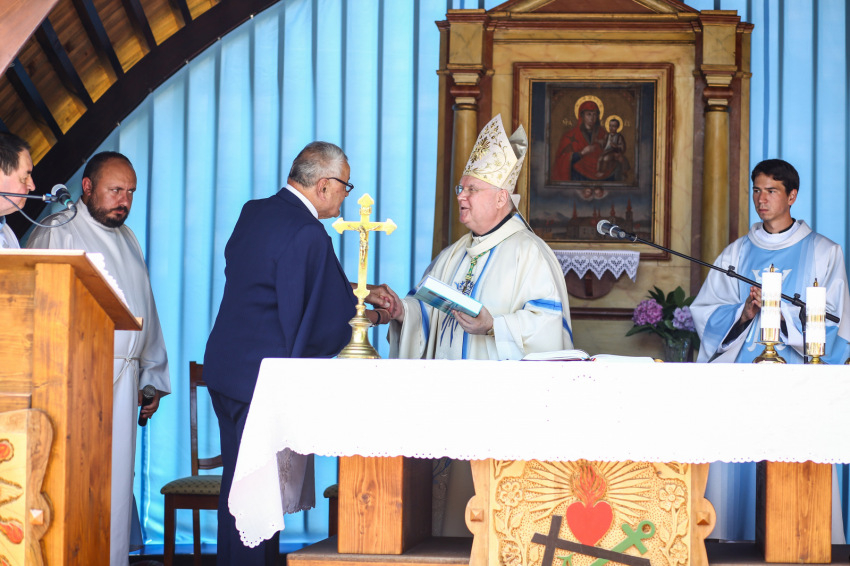 A mise végén a püspök megáldja a skapulárékat és viselőiket, a plébános pedig elmondja: ő 1964 óta visel skapulárét, abban a reményben, hogy egyszer – minél előbb – elérkezik az az idő, amikor Mária szeplőtelen szíve diadalmaskodik, és minden nép dicséri az Istent. Végül Köteles Ágoston átnyújtja a vendégnek a felvidéki magyarság történetéről, szenvedéseiről írt könyvét. A püspököt, mint elmondja, közvetlenül érinti a téma, mivel szülőfalujából, a romániai Túrterebesről is sokakat elhurcoltak annak idején.