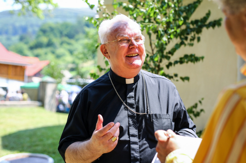 Amikor a mise után itt-tartózkodásának két napjáról kérdezzük Cserháti Ferencet, a lenyűgöző tájról, a szállásának ablakán elé táruló pazar látványról beszél először. „A Szűzanya jó helyen rendezte be a rendelőjét” – mondja, majd az itteniek lelkületéről, Máriához való ragaszkodásáról beszél. És a szórványlét sajátosságairól, nehézségeiről, amelyek Nyugaton is hasonlók, és fokozottabb elkötelezettséget, buzgóságot eredményeznek. Cserháti Ferenc püspök mindent megtesz, ami tőle telik, hogy a létért való küzdelmében támogassa a szórványban élő magyarságot, de tudja, hogy amit ő tehet, csak csepp a tengerben.