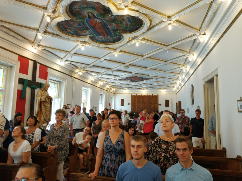 A nagy múltú, hajdan napi több telt házas misét ünneplő Szent Imre-kápolna közössége megfogyatkozott mára – most megtöltötték a görögkatolikus hívek, és életet hoztak a szolidan zsivajgó gyerekek. Tamás atya az éltető, örömteli közösség és a vidámsággal teli vasárnapok szerepét hangsúlyozta.