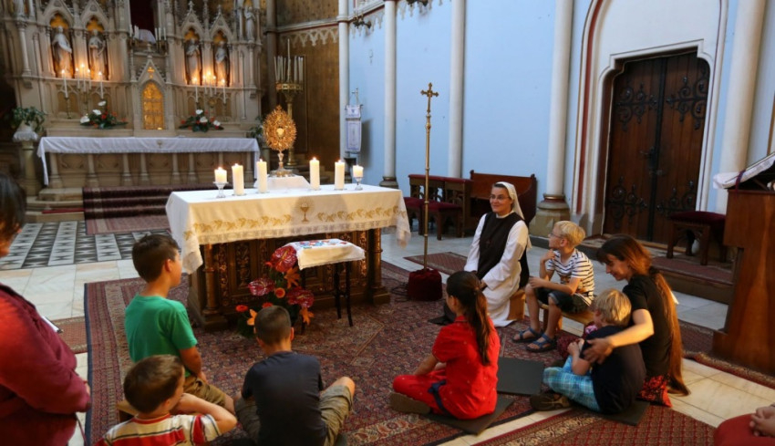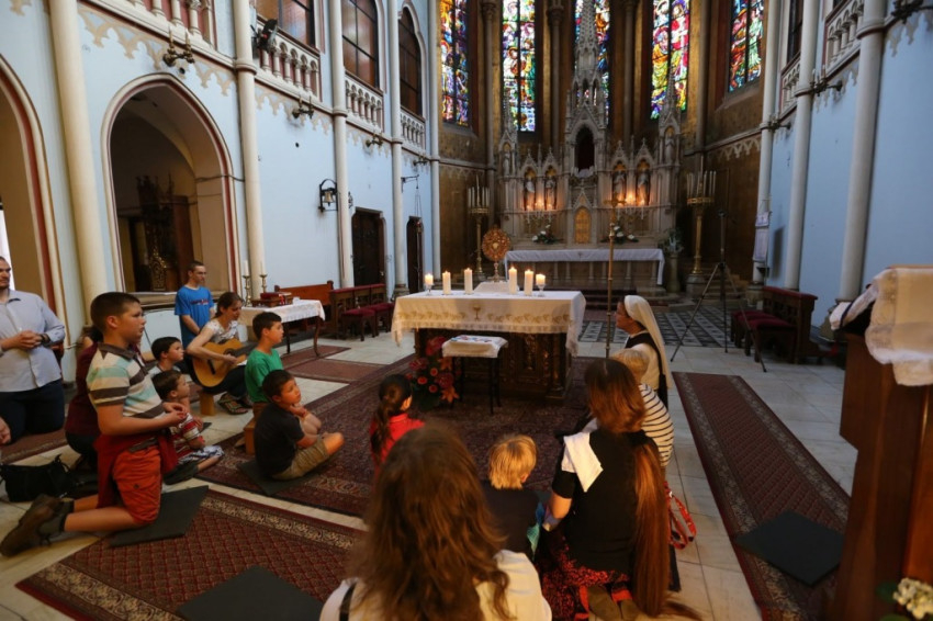 – Kapcsolatra nevelünk, a kapcsolat pedig kialakítja a lélek benső struktúráját, ezért mindez lassan magától válik belső indíttatássá. A kapcsolat élménye formálja a gyermekeket. Ehhez nélkülözhetetlen a gyakorlás, a rendszeresség, az elkötelezettség. Tudjuk, hogy szolgálatunk a családok támogatásával válhat teljessé. A szülők egy része kezdetben kicsit aggódott amiatt, vajon hogy fogják bírni a gyerekek a szentségimádást, nem lesz-e sok nekik a szentmise után. A kicsiknek azonban ez nem okoz gondot. Kapcsolati szinten, a szív szintjén hihetetlenül mély vágyak és igények élnek bennük. A szentségimádás során teret adunk annak, hogy Jézus vágyai és a gyerekek vágyai egymásra találhassanak. Hiszünk Jézus jelenlétében, a vele való kapcsolat erejében és vonzásában: erre bízzuk rá magunkat.