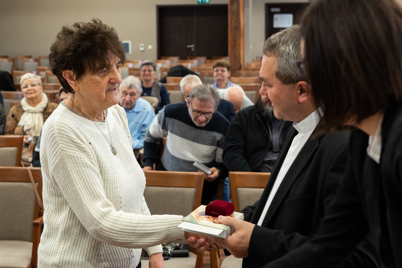 Az előadás után a főpásztor egy-egy emlékplakettel és a lelki elmélyülést segítő könyvvel személyesen köszönte meg minden egyes beteglátogató önkéntesnek a szolgálatát.
