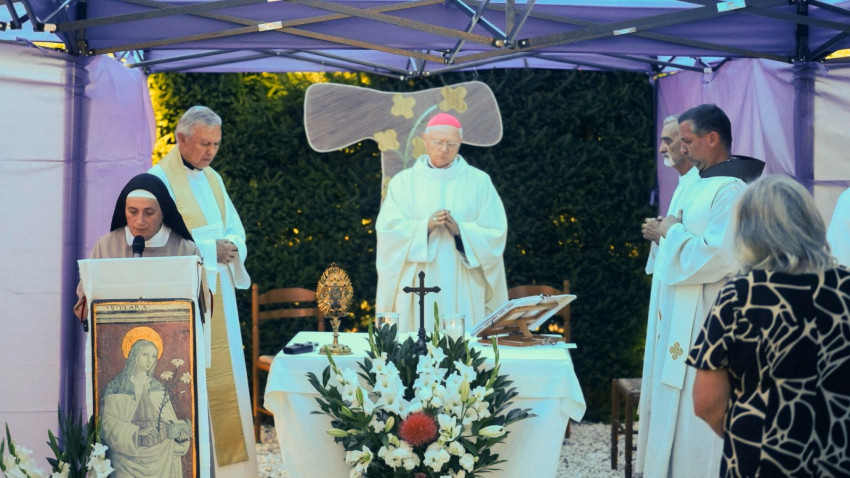 „Az Úr ezen a helyen készített számunkra otthont, e kis nép körében” – fogalmazott Ferenc-Mária nővér, a „Szécsény Ágacskája” Klarissza Remeteség apátnője, a Szent Klára ünnepére időzített jubileumi ünnepségen tartott nyitóbeszédében. „Megrendítő ez a jubileum – folytatta a szerzetesnővér –, hiszen egy égi születéssel is összekapcsolódik: tegnap hajnalban ugyanis az Úr magához hívta Mária-Rozália nővérünket. Ő már Isten mellől vesz részt az ünneplésben. Hálát adunk az ő Istennek szentelt életéért!”