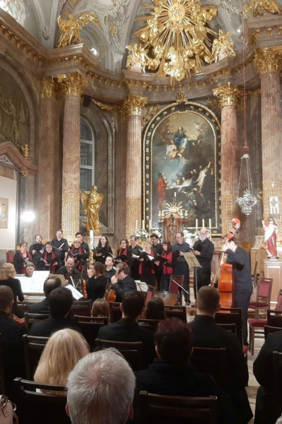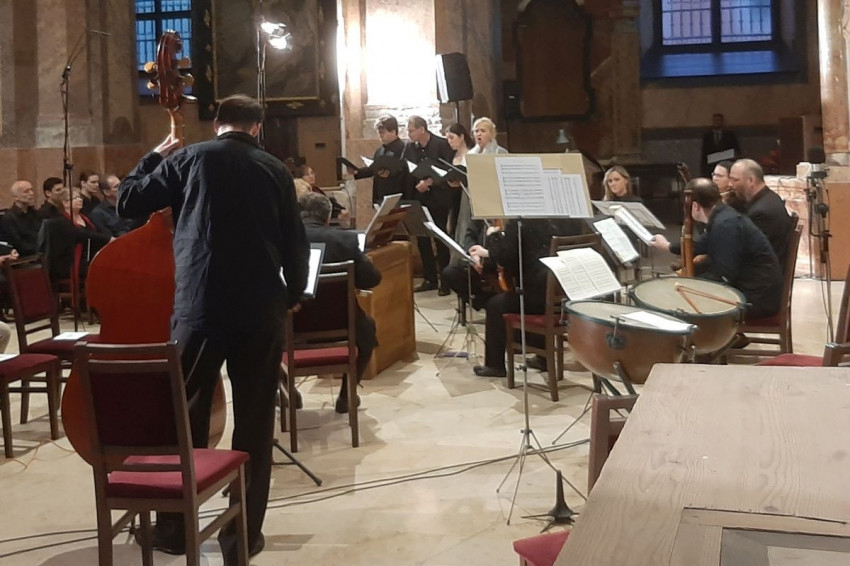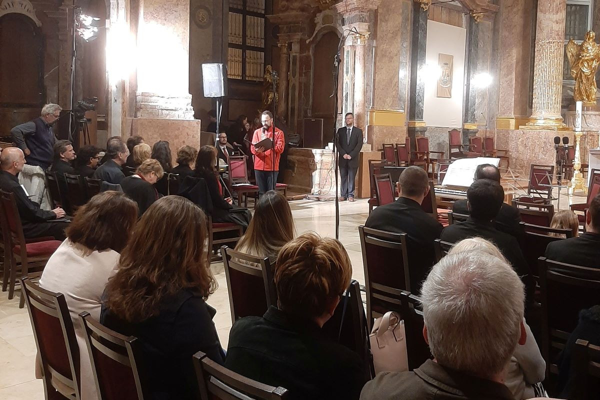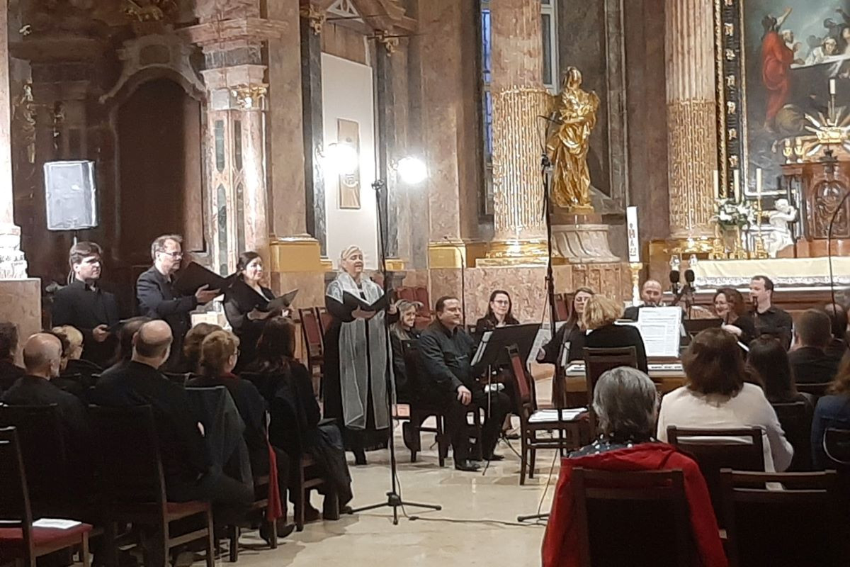 A közönségnek valódi időutazásban volt része: a frissen restaurált barokk mennyezeti festmények alatt barokk hangszereken szólalt meg a barokk muzsika, Sylvia Leidemann csembalóművész, karnagy vezetésével.