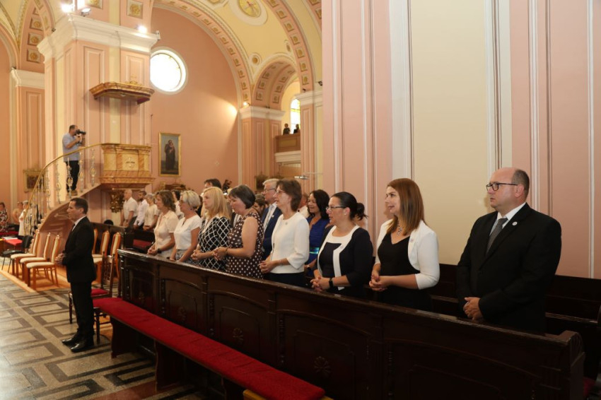 A liturgia után Biró Péter főigazgató köszöntötte a meghívott nyolc oktatási intézmény több száz munkatársát.