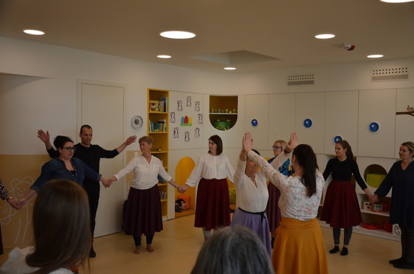 A különböző szekciófoglakozások keretében volt léleksimogató mondóka, mese és báb Becska Zsóka bábpedagógus, művészeti oktatóval; Zenei nevelés hétköznapi eszközökkel címmel Tama Krisztina zenepedagógus, művésztanár tartott rendkívül érdekes előadást; az óvodai néptáncoktatás lehetőségeit bemutatva pedig Maráz István táncpedagógus perdítette táncra az óvónőket. A Szent Anna Óvodában zajló foglalkozások az intézmény gyönyörű barokk kápolnájában imával, énekkel és csendes percekkel értek véget.