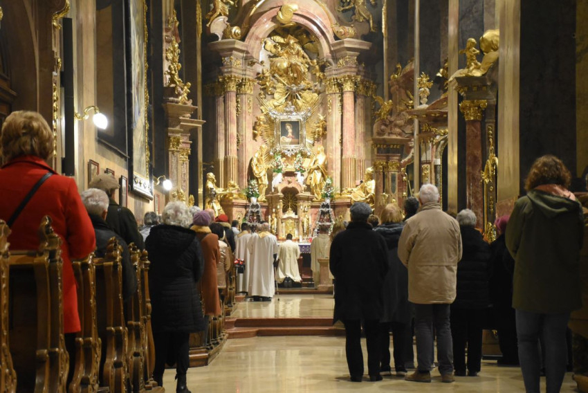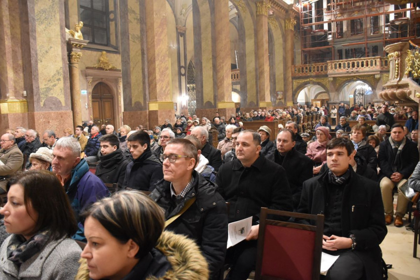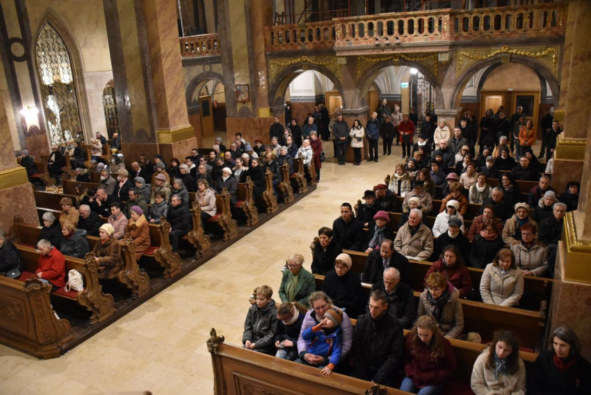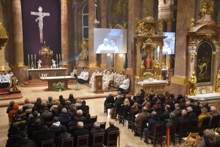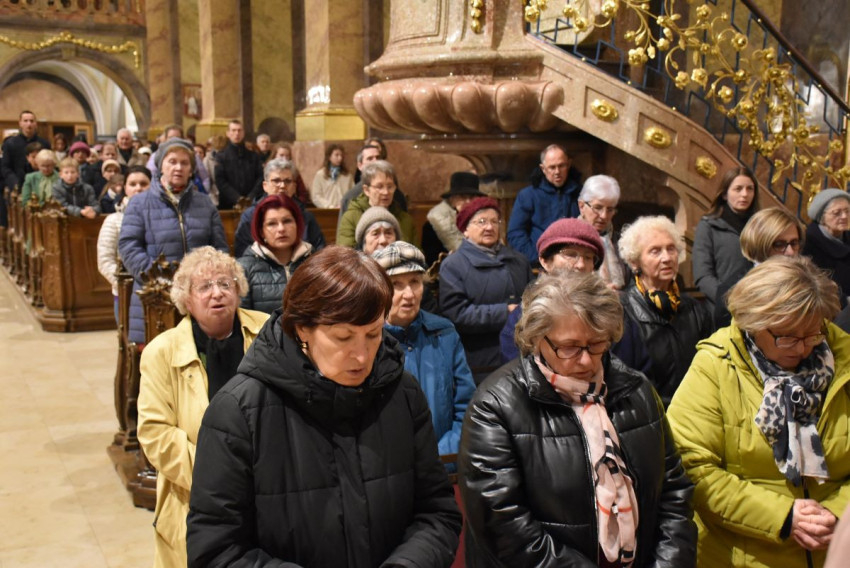 Megtöltötték a győri hívek és a zarándokok a Nagyboldogasszony-székesegyházat a vérrel könnyezés évfordulójának estéjén.