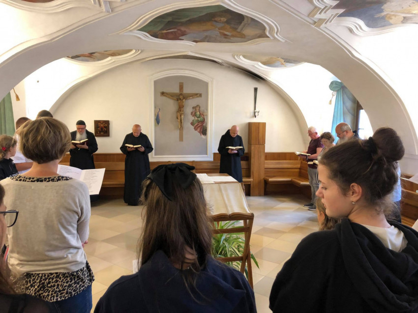 Egy másik napon a csodálatos környezetben található Tihanyi Bencés Apátságba látogatott a családok apraja-nagyja, ahol Kiss Domonkos OSB nagy szeretettel várta az egész csapatot. Egy órányi tanításban lehetett részük a jelenlévőknek a szentek életéről, majd megtekintették a népszerű apátsági templomot és a királyi kriptát. Abban a különleges élményben is részesülhetett a közösség, hogy az apátság ebédlőjében fogyaszthatták el a finom ebédet. A délután folyamán a csoport többsége elsétált az Apáti-hegyen található Őrtorony-kilátóhoz, ahol a hegyet megmászók lenyűgöző panorámában részesülhettek.