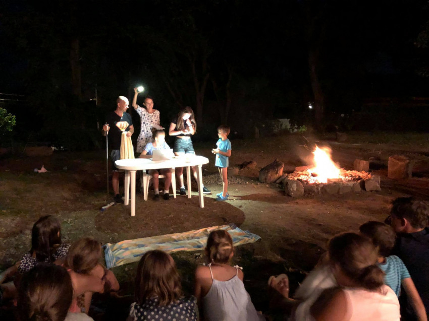Megérkezett Győrből Péceli Bence Imre kármelita szerzetespap is, aki szívén viseli a győri kármelita-templomhoz tartozó családok lelki életét. A táborzáró estén – immár hagyományosan – tábortűz keretében minden család előadást adott. Egy-egy népdallal, slágerrel vagy éppen tánccal, történetek eljátszásával örvendeztették meg egymást a bátor szereplők.