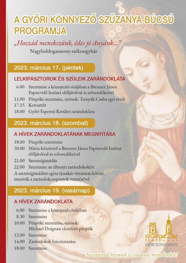 Március 19-én a 10 órakor kezdődő püspöki szentmisét a Mária Rádió és az EWTN Katolikus Televízió élő adásban közvetíti.