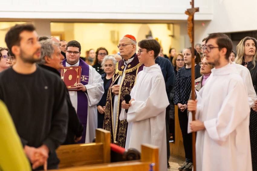 A keresztutat vezető Erdő Péter bíboros mellett a plébániai közösség tagjai olvasták fel az egyes állomások elmélkedő imáit. Jézus szenvedéséről és áldozatáról elmélkedve azért imádkoztak, hogy életükben felismerjék a kihívásokat és a bennük rejlő értelmet. Kitartásért fohászkodtak a nehézségekben, kérték Istent, hogy a „szeretete fényével világítsa útjukat”.