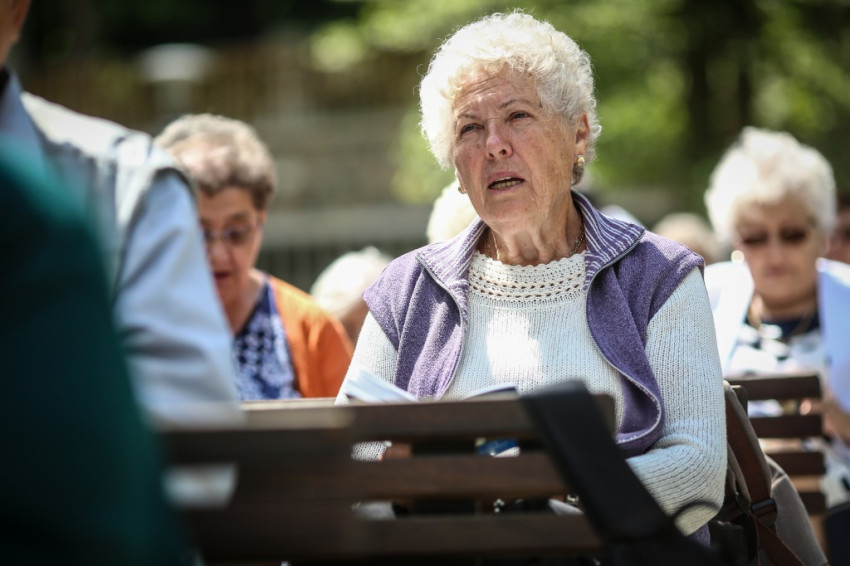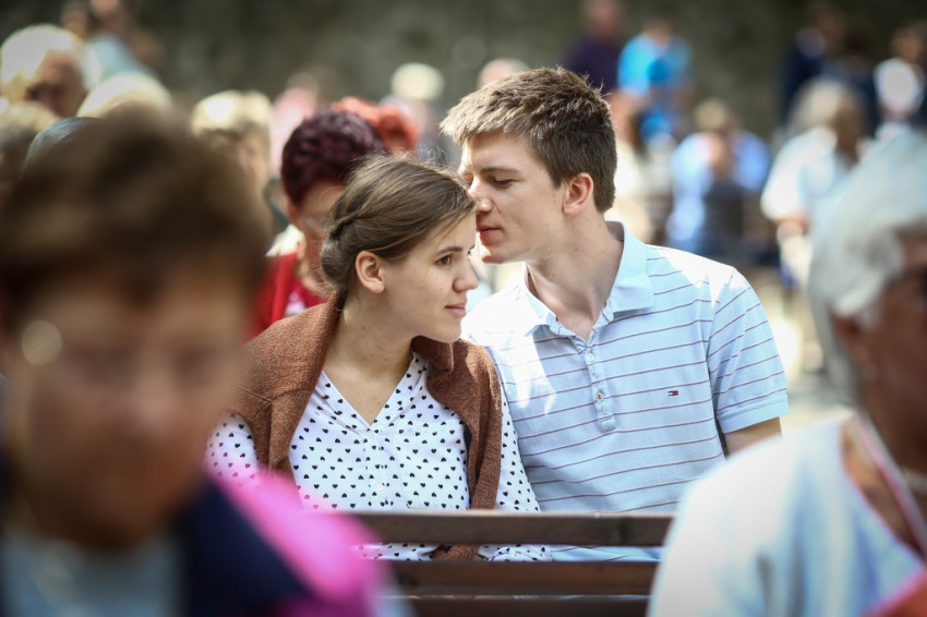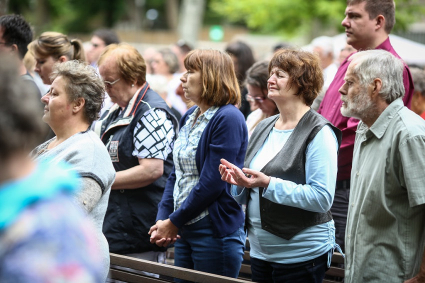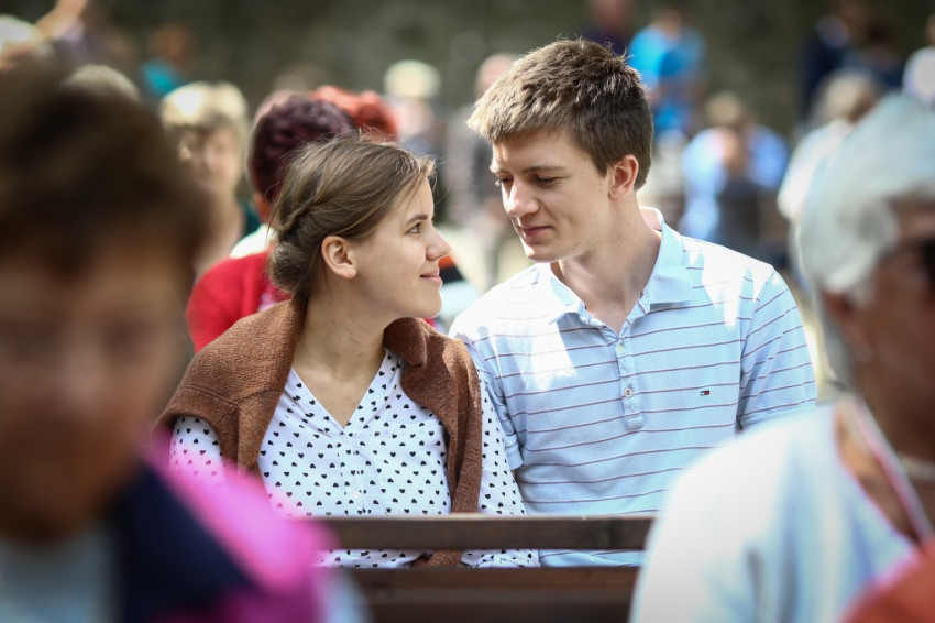 A misén részt vevő házaspárok némelyike eleven példája a prédikációban elhangzottaknak. Olyan, évtizedek óta együtt élő emberekre gondolok, akik kézen fogva, egymásnak dőlve, összekapaszkodva, néha össze-összesúgva ülnek egymás mellett. Bizonyára sok-sok nehéz helyzetet oldottak meg együtt, és önfeláldozóan küzdöttek a kapcsolatukért, amikor – ez talán elkerülhetetlen – olykor rosszabb időszakokat éltek meg. Számomra itt ma ők a „főszereplők”. Hiszen – noha Bíró László püspök elsősorban a fiatal házasokat hívta e zarándoklatra – a fiatalabbaknak, akik előtt bizonyára nem egy kemény próba áll még, valamit tőlük lenne jó ellesniük.