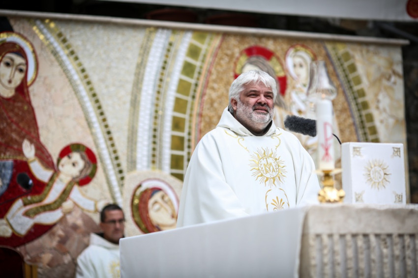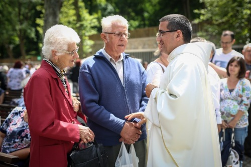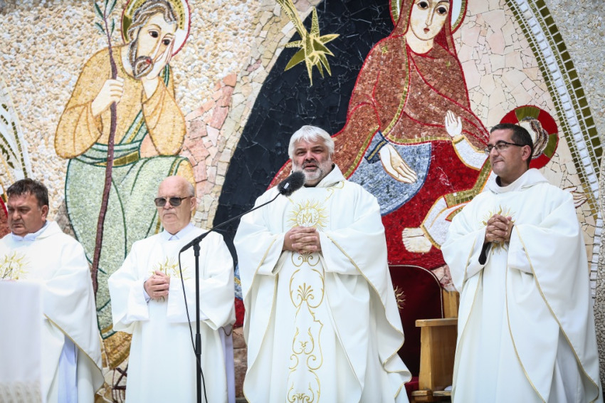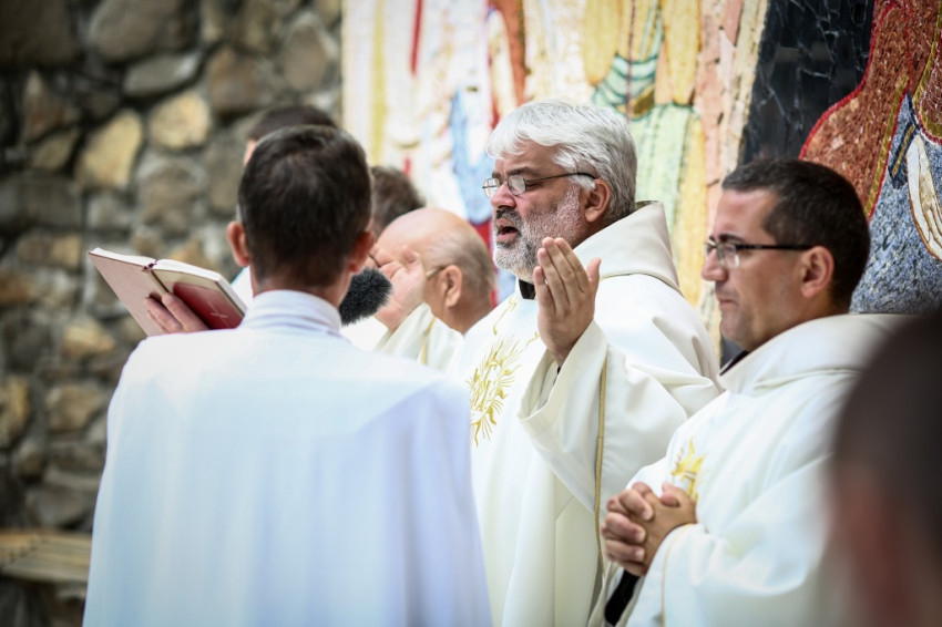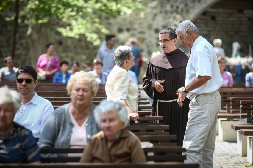 Amikor visszatérek az oltárhoz, már nagy a tömeg. Sokan hallgattak Bíró László püspök hívó szavára, ő azonban – mint most megtudjuk – betegsége miatt végül nem tudott eljönni. A misét Bán Jónás ferences mutatja be. Az olvasmányban Szofóniás próféta az Úr irgalmáról, védelméről biztosítja „Sion leányát”, a zsidó népet, Pál testvéri és vendégszeretetre, derűre int, az evangéliumban pedig Mária látogatóba megy Erzsébethez, és hálaénekével válaszol Erzsébet köszöntésére.