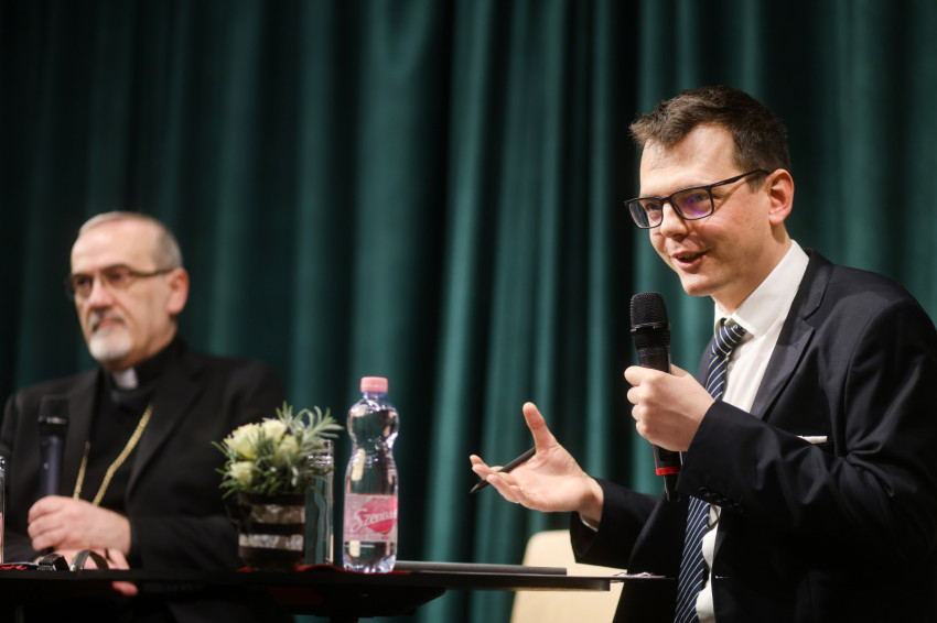 Az előadáson jelen volt Michael W. Banach érsek, magyarországi apostoli nuncius és William Hanna Shomali, a Jeruzsálemi Latin Patriarkátus segédpüspöke.