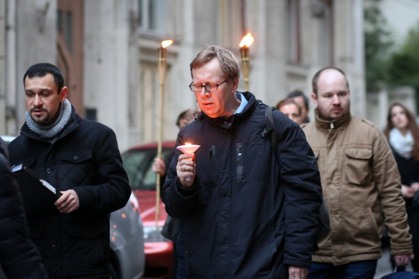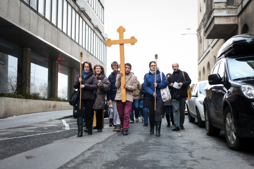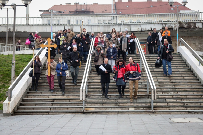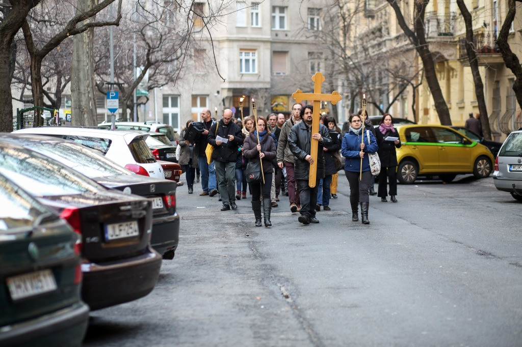 A keresztút során bejárták a kerületben a modernkori szenvedések helyszíneit: a Schöpf-Merei Kórházat, ahol állt egy inkubátor a nem kívánt gyermekeknek, a Bokréta utcát, ahonnan Boldog Salkaházi Sárát elhurcolták, a Boráros téri aluljárót, ahol hajléktalan emberek töltik napjaikat és gyakran éjszakáikat.