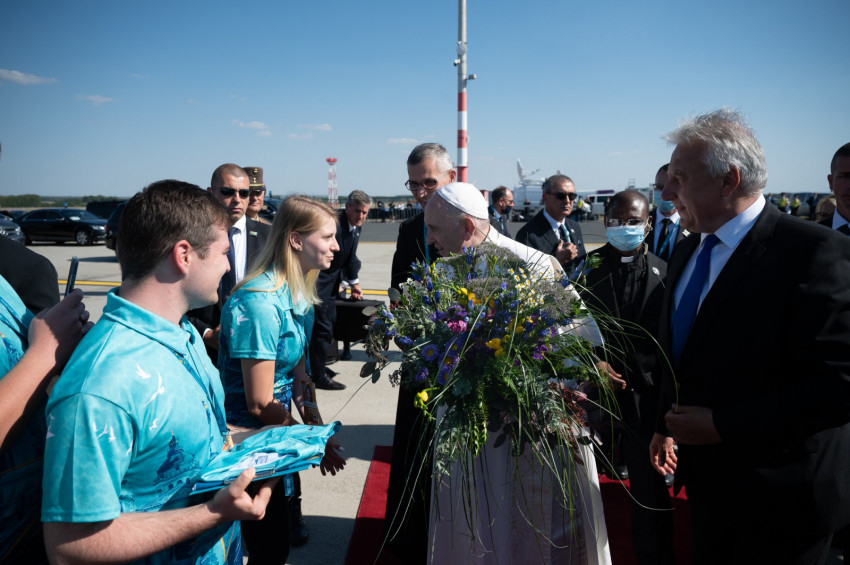 A pápának érkezésekor átadott csokorban volt fehér jázmin a kegyelem jelképeként; fehér liliom mint az égi tisztaság jele; kerti ruta, a tiszta látás és az irgalom jelképe; szagos müge az alázatosságra utalva; frézia, az ártatlanság, tisztaság szimbóluma, valamint kakukkvirág (mayflower), amelynek jelentése: szívesen látott.