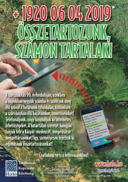 „Összetartozunk, számontartalak! Hívjon meg, és hívjon fel másokat!” – így szól kezdeményezésük. A Háló kiírása arra buzdít: „A szétszakítás, a trianoni békediktátum évfordulóján, ezekben a napokban vegyük számba és szólítsuk meg anyanyelvünkön a határaink túloldalán, különösen a szórványban élő néhány barátunkat, ismerősünket! Mindenképpen élő szóval tegyük: telefonáljunk, vagy használjuk az internetes lehetőségeket, közösségi felületeket. A határtalan szeretet hangján fonjuk tele a Kárpát-medencét, megerősítve kapcsolatainkat, és nemzettársainkat. Így, személyesen fejezzük ki egymásnak összetartozásunkat!”