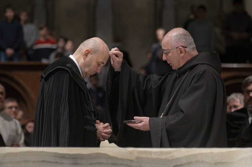 A hamu az élet mulandóságára, saját életünk tünékenységére emlékeztet – mondta a főapát. – A bűnbeesés, az Istentől való elszakadás és a halál hatalmának jele. „A hamu sötét mementó: »por vagy, és porba térsz vissza«” (Ter 3,19).