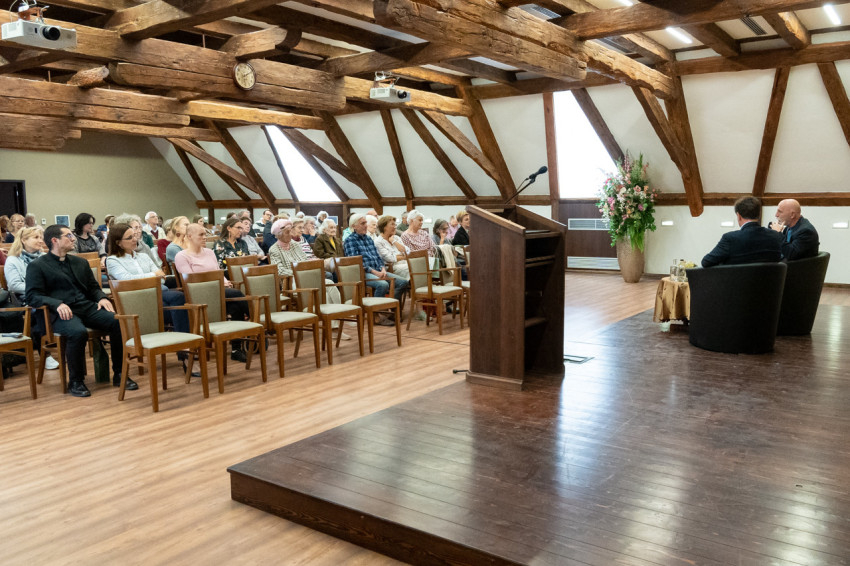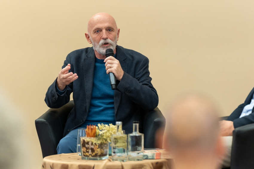 A József Attila-díjas erdélyi magyar íróval Görföl Tibor teológus, a rendezvény házigazdája beszélgetett Kitelepítés című műve alapján a Pécsi Egyházmegye szabadegyetemén, október 8-án a Magtár Látogatóközpontban.