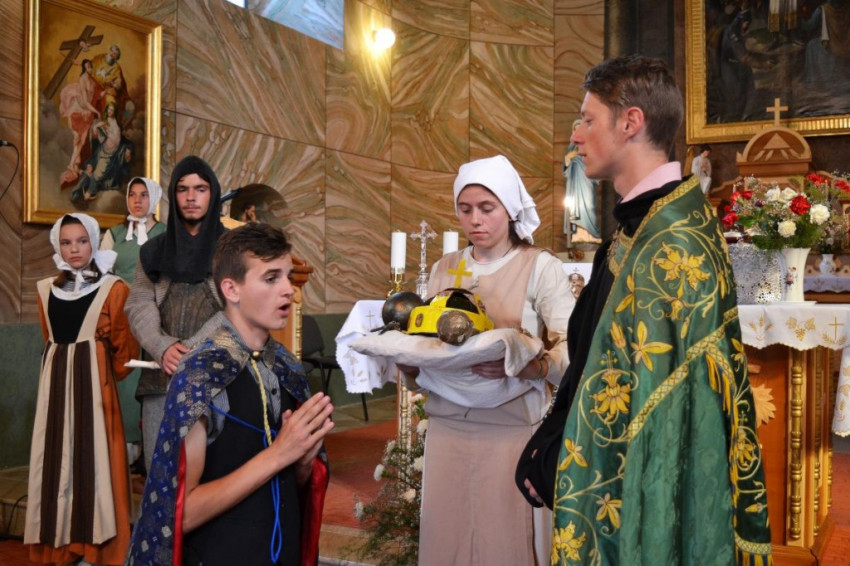 A szalontai gyermekotthon fiataljai örvendeztették meg a zarándokokat Szent László életéből inspirált jelenetek előadásával. Kiss Márton bélfenyérei plébános moderálásával a szent király életpéldáját kiemelve tanúságtételeket, tapasztalatokat osztottak meg egymással a zarándokok és konkrét irányvonalakat fogalmaztak meg a keresztény ember, illetve a plébániaközösségek számára.