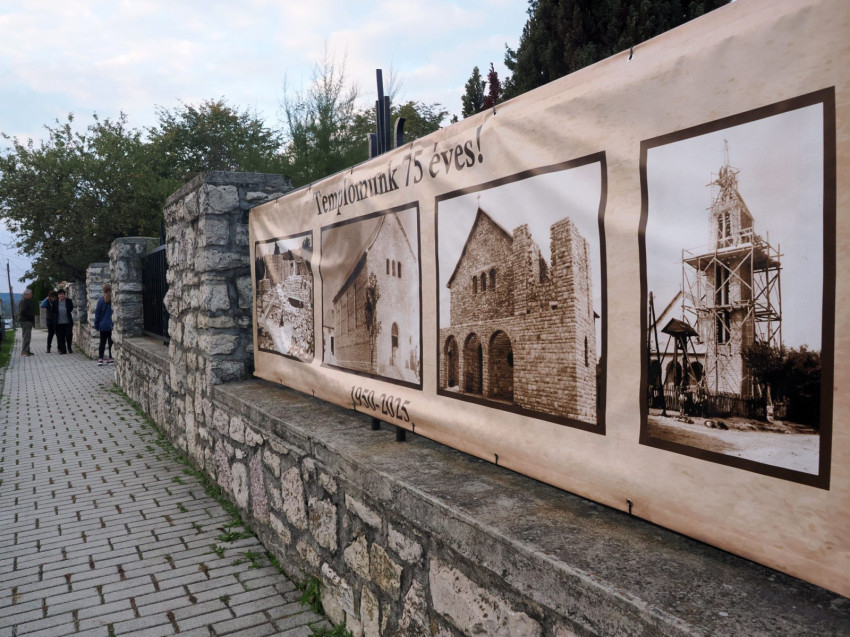 Az ünnep tiszteletére megnyílt fotókiállítás a templom falai között idézi fel a hárskúti közösség múltját: az építkezés pillanatait, a felszentelés örömét és a hetvenöt év eseményeit, melyek során annyi imádság és hála szállt Isten felé.