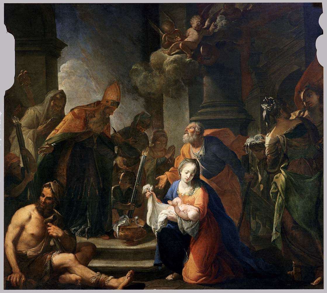 Kép: Andrea Celesti: Urunk bemutatása a templomban (1710 körül)