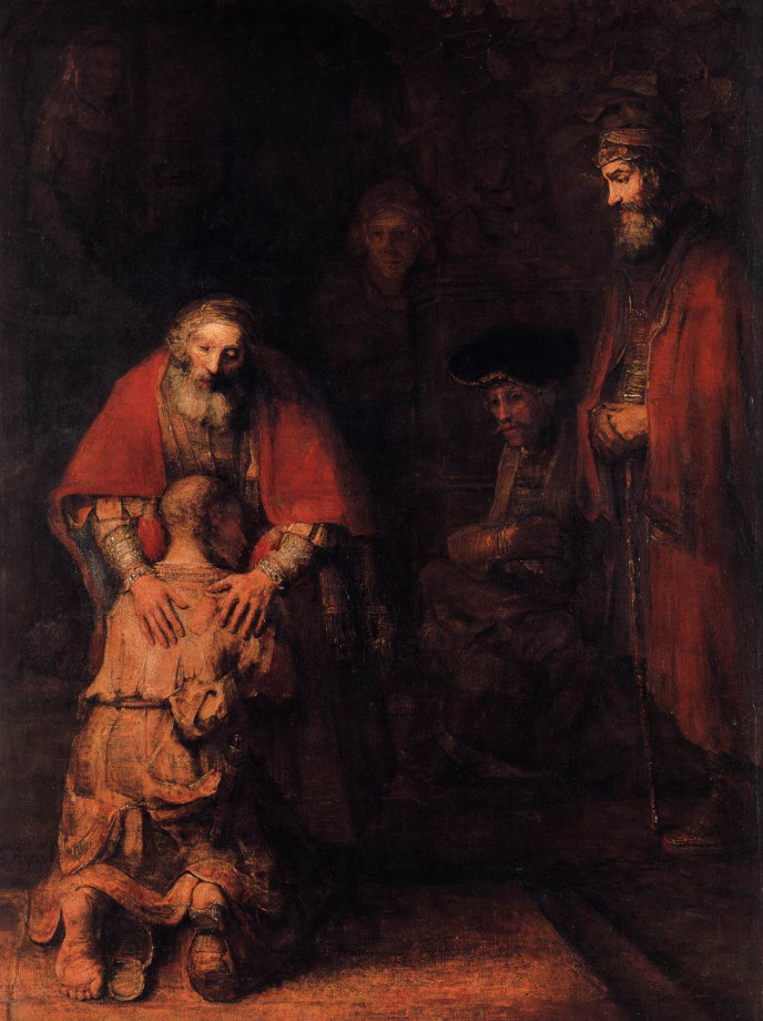 Kép: Rembrandt: A tékozló fiú hazatérése (1669 körül)