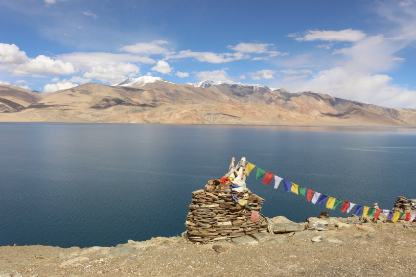 Néhány órával később, már reggeli után, összepakolva, meghatottan álltunk sorba a szállodaigazgató előtt, aki távozásunkkor a nyakunkba akasztott fehér imasállal kívánt szerencsét a hegymászóknak. Aztán a tetejéig megpakolt terepjáróval elindultunk a túra kiindulópontjához, ahol az első éjszakát én is sátorban töltöttem. Jó néhány óra zötykölődés után érkeztünk meg a táborhelyre, a hihetetlenül kék Co Moriri tó közelében fekvő völgybe. Nemcsak a modern civilizációt hagytuk magunk mögött, de időben is vagy száz évet ugrottunk vissza. Érkezésünkre a következő napok karavánja már összeállt, a konyhasátorban a szakács és segítője már a vacsorát főzték, a lovász is megjelent a málhásállatokkal. A latrina kiásása után felállították a mi sátrainkat is, nekünk pedig felszolgálták az ötórai teát, és elmagyarázták a másnapi menetrendet. Reggel hatkor teával ébresztenek – mondta a guide –, aztán gyors mosdás, öltözés és pakolás. Amíg reggelizünk, ők szétszedik a sátrakat, felmálházzák a lovakat, és legkésőbb hétkor indulás.