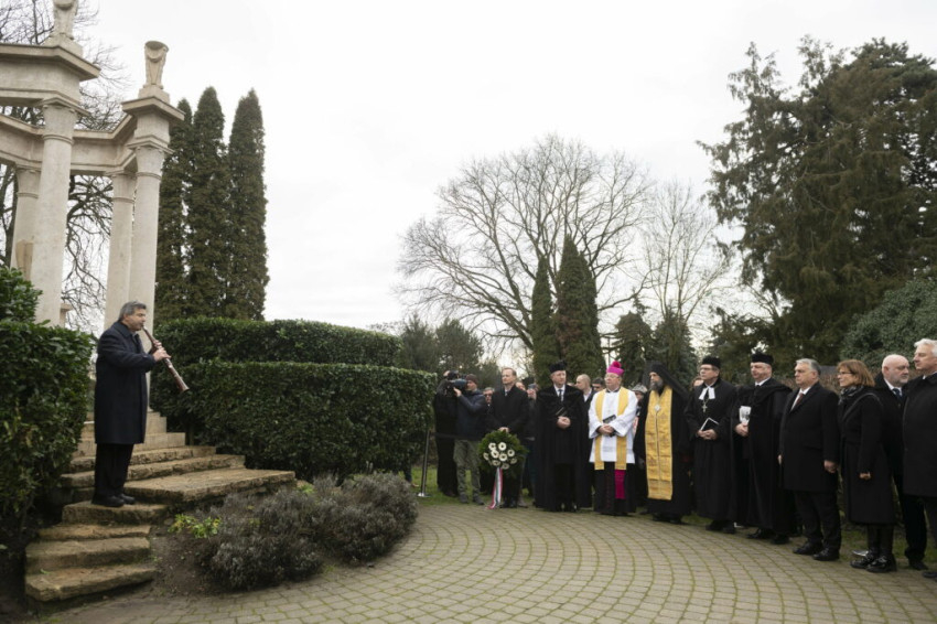 A szertartáson részt vett Orbán Viktor és felesége, Lévai Anikó; Semjén Zsolt miniszterelnök-helyettes, valamint más közjogi és egyházi méltóságok. „Miközben Kölcsey versét olvassuk vagy Erkel dallamát énekeljük, elfeledkezünk róluk, mert meglátunk és megértünk valami náluk fontosabbat. Úgy érezzük, hogy a nekünk szánt üzenet valahonnan a múlt feneketlen kútjából száll fel hozzánk. Mintha nemzedékek százainak az előttünk élt magyarok, a történelem előtti idők ködébe vesző, legelső, őseinktől kiinduló, minden eddig élt magyart magába ölelő üzenete lenne, amely nemcsak nekünk szól, de minden ezután születő magyar szívét is célba veszi…” – mondta beszédében Orbán Viktor.
