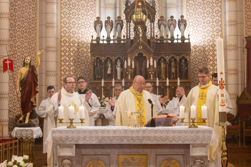 Húsvétvasárnap az ünnepi szentmisét Fekete Szabolcs Benedek segédpüspök mutatta be a szombathelyi székesegyházban.