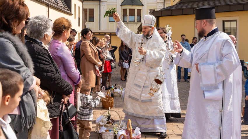 Orosz Atanáz megyéspüspök húsvét vasárnapi homíliájában felhívta a figyelmet: húsvét reggelén a görögkatolikus egyház az evangéliumot nem a hívek, hanem Kelet, az oltár felé fordulva olvassa. Ez a mély értelmű jelkép azt a szokást idézi fel, ahogy hajdan a jeruzsálemi keresztények ünnepelték a feltámadást. A csodálatos fényből merítettek fáklya- és gyertyafényt, s annál olvasták fel a feltámadás evangéliumát.