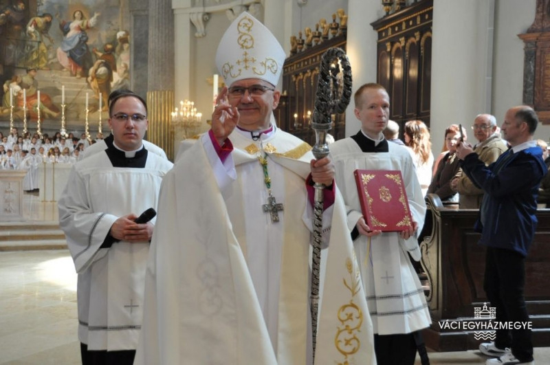 Húsvétvasárnapi szentmisét mutatott be Marton Zsolt megyéspüspök a váci Nagyboldogasszony-székesegyházban a liturgikus év legnagyobb ünnepén. A szertartáson részt vett Kocsis Imre, a székesegyház nagyprépostja. Az asszisztenciát diakónusok, kispapok biztosították.