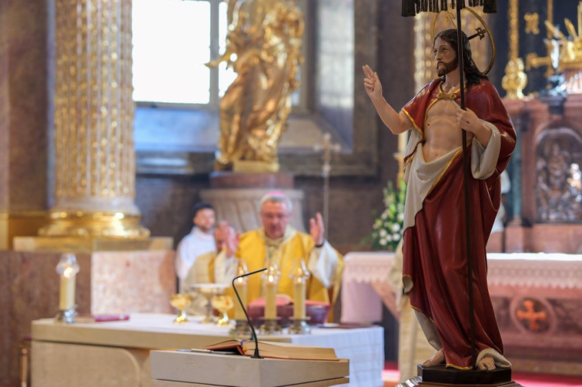 Húsvét vasárnapján ünnepi öröm töltötte be a veszprémi Szent Mihály-főszékesegyházat, ahol Udvardy György érsek mutatott be szentmisét Krisztus feltámadásának ünnepén.