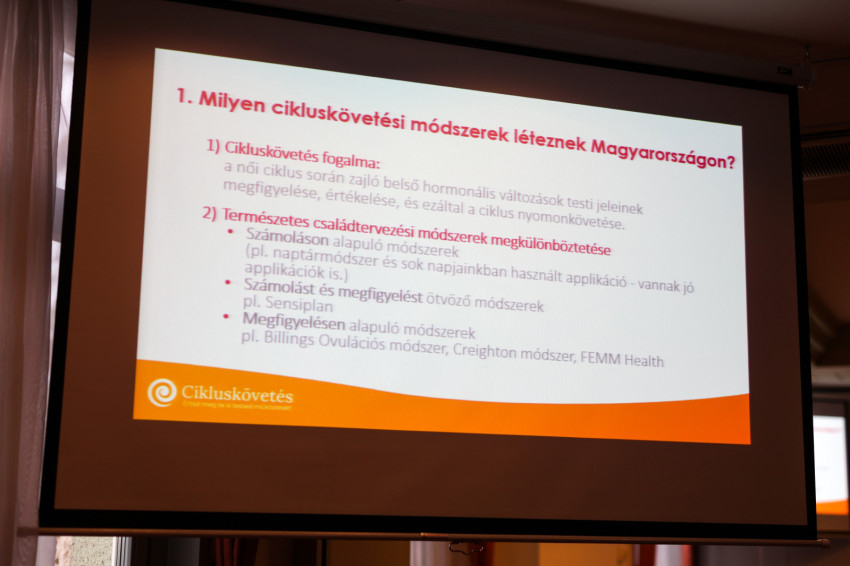 Szó volt a számoláson alapuló, ma már elavultnak számító naptármódszerről, beszéltek a megfigyelésen és számoláson alapuló Sensiplan módszerről és bemutatták a kizárólag megfigyeléseken alapuló Billings-, Creighton, Femm Health módszereket, melyeknek ma már száznál is több oktatója van Magyarországon. Ezek a módszerek arra tanítják meg a nőket, hogy kiismerjék saját szervezetük működését. Hangsúlyos az egészségtudatosság. A módszerekben közös, hogy a házaspár közös felelősségévé teszik a gyermekáldás kérdését.