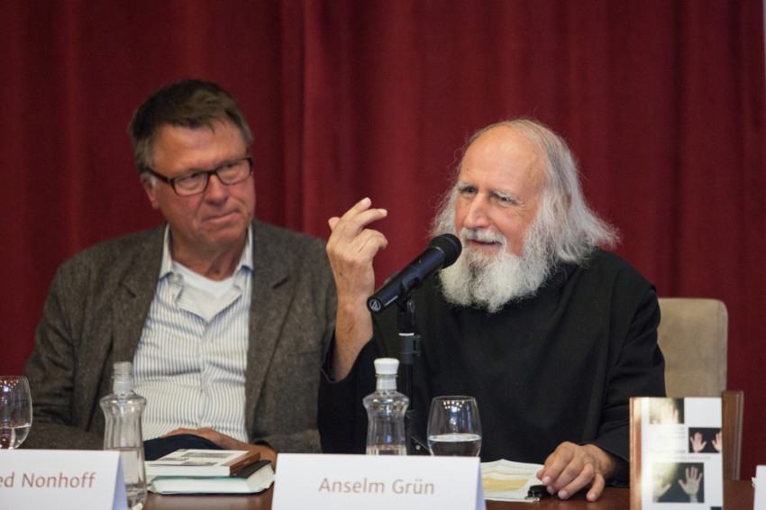 Háromfajta emberrel szokott találkozni – kezdte hozzászólását Anselm Grün, a münsterschwarzachi bencés apátság szerzetese –, közülük az első csoportba a spirituális értelemben vett keresők tartoznak, akik vagy kiléptek az Egyházból, vagy bizonyos távolságra helyezkednek el tőle. Általában a hitvallás idegen számukra, jóllehet a dogmatika nem lezárt mondatok teljessége, hanem művészet, amely Isten titkát az ember számára nyitva hagyja. Feléjük úgy jó közelíteni, ha bemutatjuk, az Egyház tanítása miként segíti az életüket. A második csoport a nem hívők köre, akikben ugyanakkor nagy vágy van a titok, a transzcendencia iránt. Anselm atya kiindulópontja, hogy hisz ezekben az emberekben, a bennük élő vágyban a korai egyházatyák szellemében, akik szerint a lélek természeténél fogva keresztény vonásokat hordoz. Őket nem moralizálva, hanem önmagában hatni képes nyelven lehet jól megszólítani, ahogy Lukács is teszi evangéliumában: abból indul ki, hogy kicsoda az ember, és nem abból, hogy mit kell tennie. A harmadik fajta ember, akivel Németország legismertebb lelki írója találkozni szokott, az, aki hisz, de hitének útja során újra meg újra kétségek merülnek fel benne. A bencés szerzetes úgy látja, legtöbbször a természettudományos képzettség kerül konfliktusba az emberek istenképével, amely sokszor még a gyermekkorukban alakult ki. Nekik azt javasolja, próbálják ki a hit útját, hogy működik-e. Anselm Grün tapasztalata, hogy az Istent elutasítók a túlságosan megszilárdult istenképet utasítják el, a keleti vallásokban található személytelen istennel rokonszenvezők a konkrét vonásokkal rendelkező keresztény Istent nem tudják elfogadni. Márpedig Isten egyszerre személyes és személy feletti; titok, amely felfoghatatlan; energia, amely áthat mindent; de a titok mögött ott a Te, aki megszólít engem, és akit én is megszólíthatok.