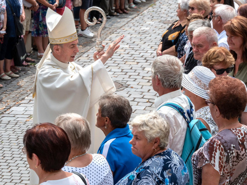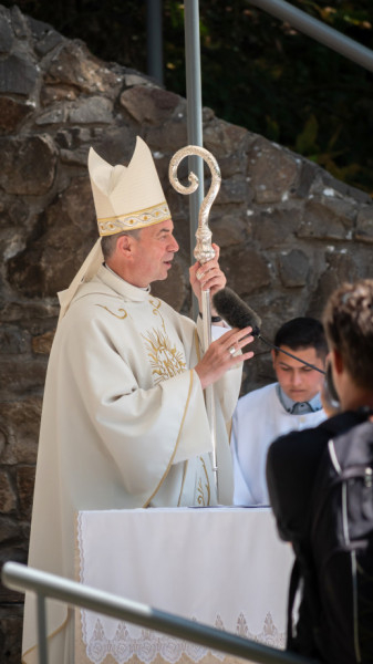 A főpásztort, valamint a nagy számban jelen lévő, határon innen és túlról érkezett zarándokokat Orosz Lóránt OFM, a kegyhely igazgatója köszöntötte.