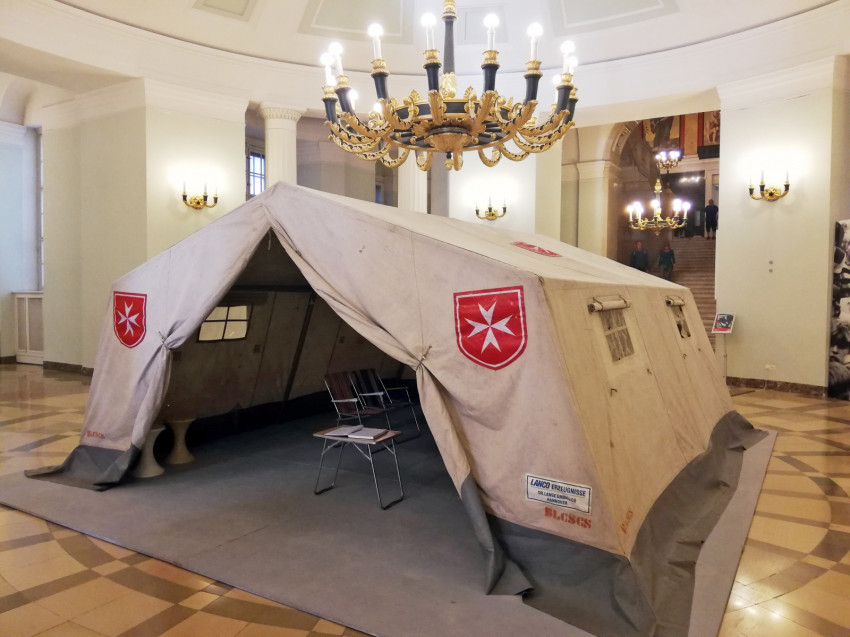 A Nemzeti Múzeum körcsarnokában bemehetünk a máltaiak egyik sátrába is, amit 1989-ben használtak az NDK-s menekültek megsegítésére. Ilyen sátrakat állítottak föl a zugligeti Szent Család-templom kertjében, ahol Kozma Imre atya vezetésével fogadták és ellátták a keletnémet menekülteket 1989. augusztus 14. és november 14. között.