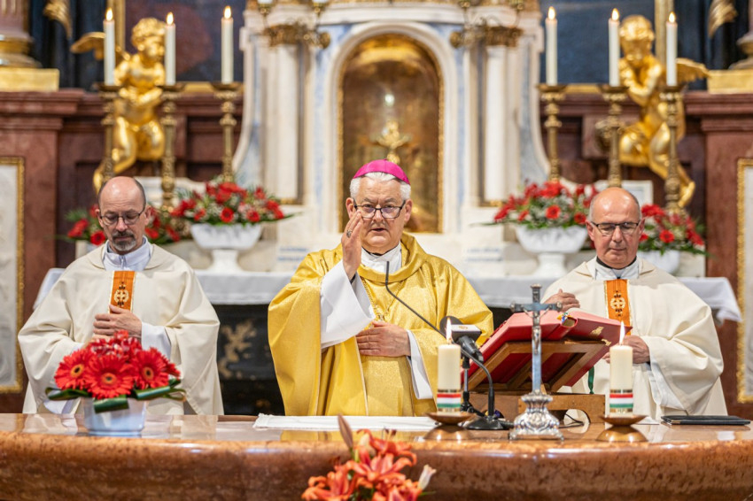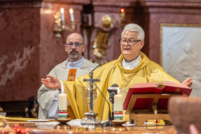 „Tegyetek meg mindent, amit tőlem hallottatok” – idézte Jézus parancsát a főpásztor a szentbeszédben, hozzáfűzve, hogy ennek teljesítése nemcsak a törvény betartását jelenti, hanem mindazt, ami együtt jár az emberi természettel. Hozzátartozik a becsület, a helytállás, a szeretet, amellyel a felebarátunk felé vagy a hazánk felé fordulunk.