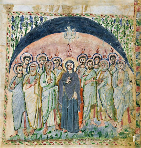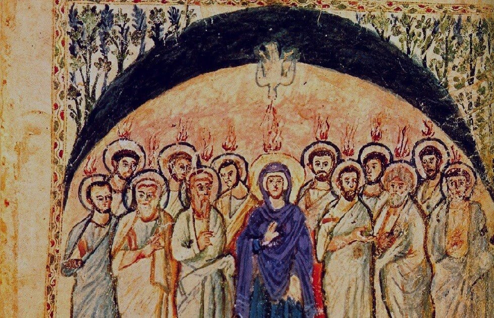 Kép: Pünkösd – Rabula-kódex, Szíria, 585 körül (Firenze, Biblioteca Laurenziana), forrás: Eparchy of Saint Maron, Brooklyn